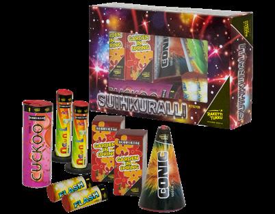 Fyrverkerisats till glädje för stora och små! Småfyrverkerier från Pierupaukku till Pirunvanne. #ekokranu #multiflash #noitapilli #pierupaukku #pirunvanne #spinneri