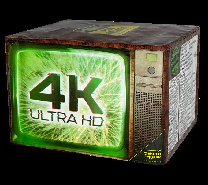 Fyrverkeri i Ultra HD! Det 4K- batteriet skjuter upp smällande pixlar och exploderande resolution i hela färgskalan. Batteriet innehåller 72 rör och effekten ändras radvist.