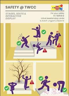 I designed a safety guide poster for users of a community space to promote engagement and creativity while ensuring injury prevention. The poster features clear, visually engaging instructions in multiple languages, making safety tips accessible to a diverse audience, including children and those with limited reading skills. The poster addresses practical safety concerns and is strategically placed for maximum visibility. As part of broader safety initiatives, this poster aims to enhance user experience and well-being, with proposed workshops to further engage and educate the community.