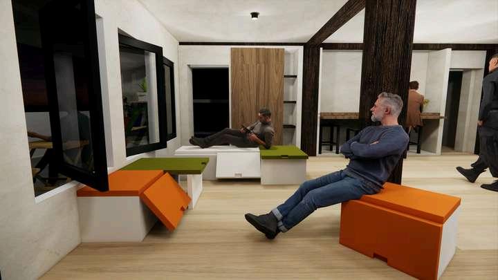 I designed space-saving furniture integrated into movable walls to maximize living space while fostering shared connections. This flexible design ensures sufficient space for all tenants, encouraging interaction and a strong sense of community embodying the kampung spirit through thoughtful spatial planning.