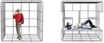 The second and third rows of squares are flexible furniture. They can be folded according to what the user requires in their space. The more needs they have, the less privacy they get.