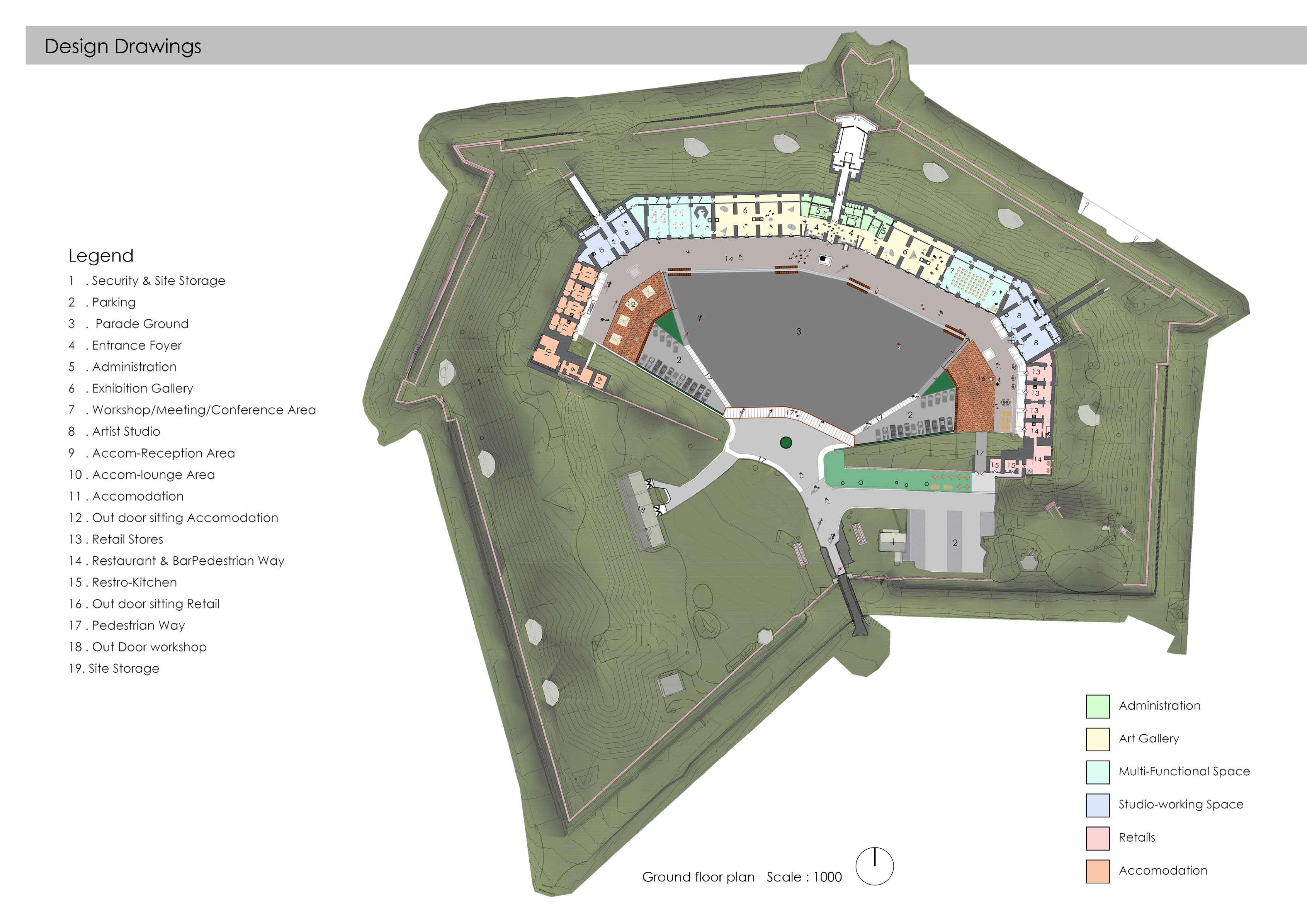 The site, which is perched on top of massive cliff, offers views of Dover to the south and the English Channel to the east. The proposals tries to design a community center that do justice to Dover's rich history while also taking use of the site's incomparable view of the surrounding countryside and the English Channel.