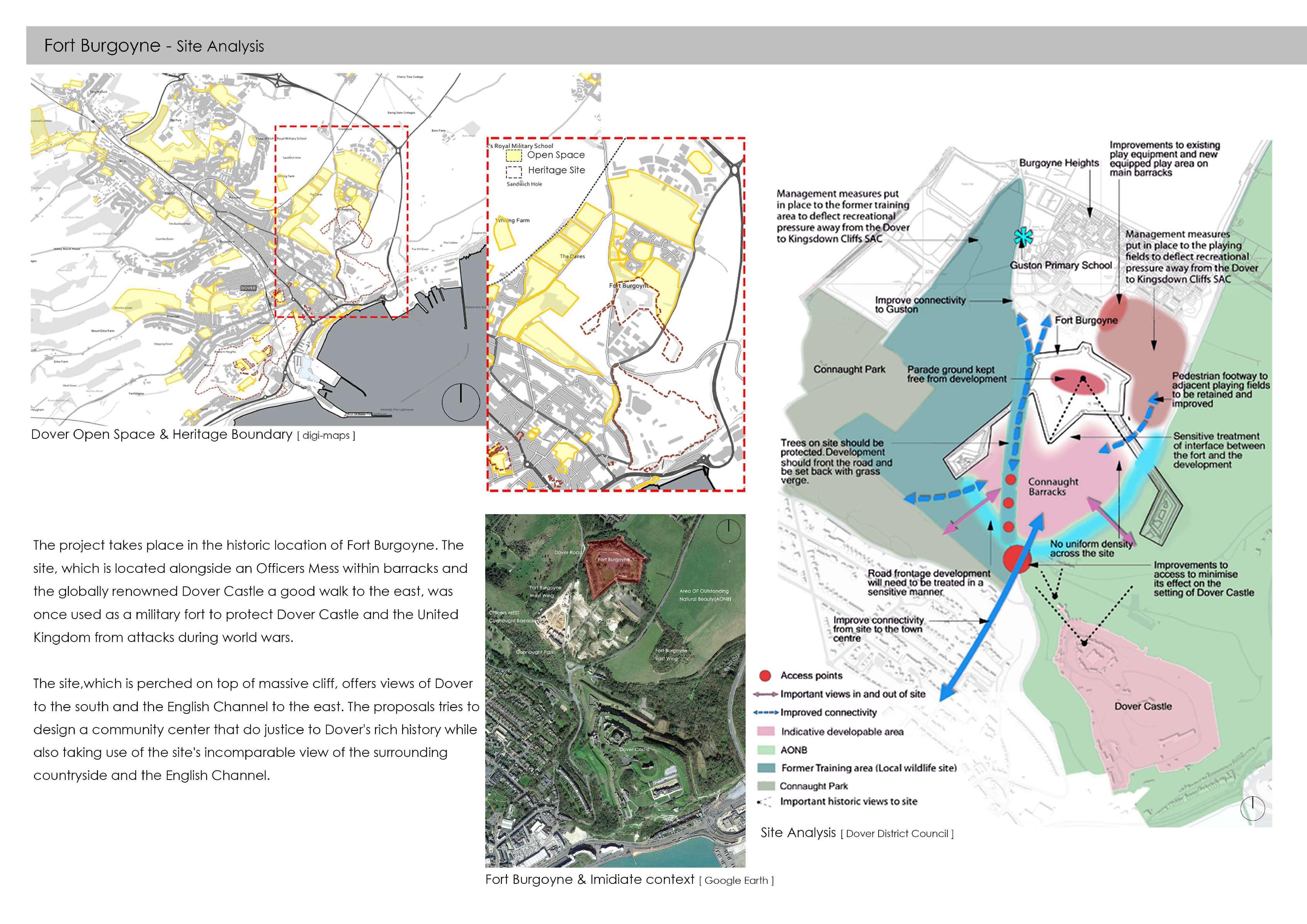 The project takes place in the historic location of Fort Burgoyne. The site, which is located alongside an Officers Mess within barracks and the globally renowned Dover Castle a good walk to the east, was once used as a military fort to protect Dover Castle and the United Kingdom from attacks during world wars.
