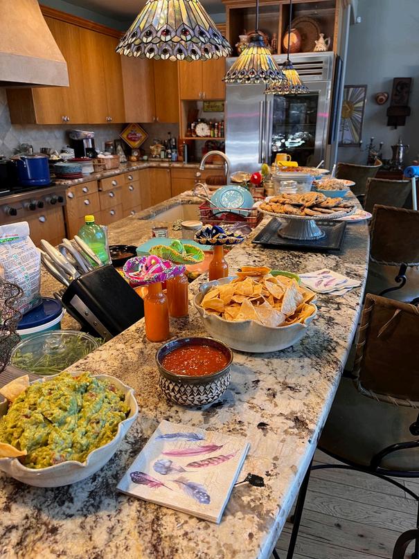 How’s your appetite? Are you ready for Adobo Chili Pork or Verde Chili Pork Tamales? Refried Beans with Hatch Green Chili and Cheddar Cheese? Roasted Corn Green Salad? Salsa, Chips, Guacamole, and Hornitos and Freshi’s Margaritas? Sangria? We will be serving Margaritas and Sangria alongside with the food.