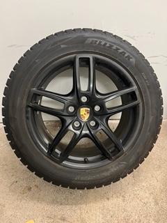 Black 10 Spoke Porsche Wheels with Bridgestone Blizzak DM-V2 studless snow tires complete with Porsche center caps and tire pressure monitoring system, purchased new 11/2022. These are very lightly used, almost brand new 265/50-19 tires (see photos). The wheels have no curb rash. They had briefly been on a 2016 Cayenne but will likely fit other Cayenne models and would also work on a Macan however that does not provide a staggered setup and would require a rear spacer. They likely will not fit on turbo models due to the size of the front brake caliper. I do not know if they will fit on a Panamera. These are 5 lug bolt 19" wheels with the following offset specs: 8.5J x 19H2 ET59. Also included are low profile fitted cable chains. Delivery of this set of 4 rims with tires, mounting and balancing, TPS and center caps would be around $5K new; asking $2,500.