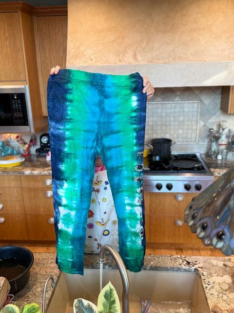 On October 12th, HDR members had a first time experience "Tie Dying" their garment of choice. Hippies present were Linda Anzolletti, Pat Nielsen, Kelly Todd , Gretchen Kolb and Audrey Moore. With all the 1960’s influence of those days, they designed, tied, swirled, rubber banded, their shirts, pants, aprons into works of art. Everyone was skeptical of their artistic flairs, but Audrey promised they would turn out fabulous. And sure enough, those fine art days of the 60’s proved that great art never dies.