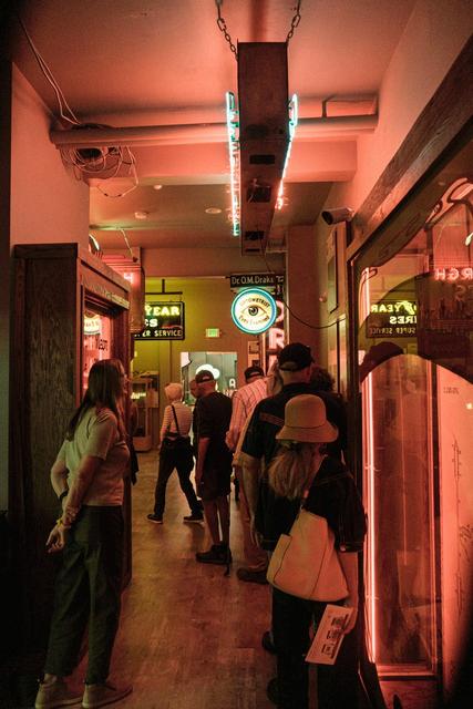A group tour at The National Neon Sign Museum