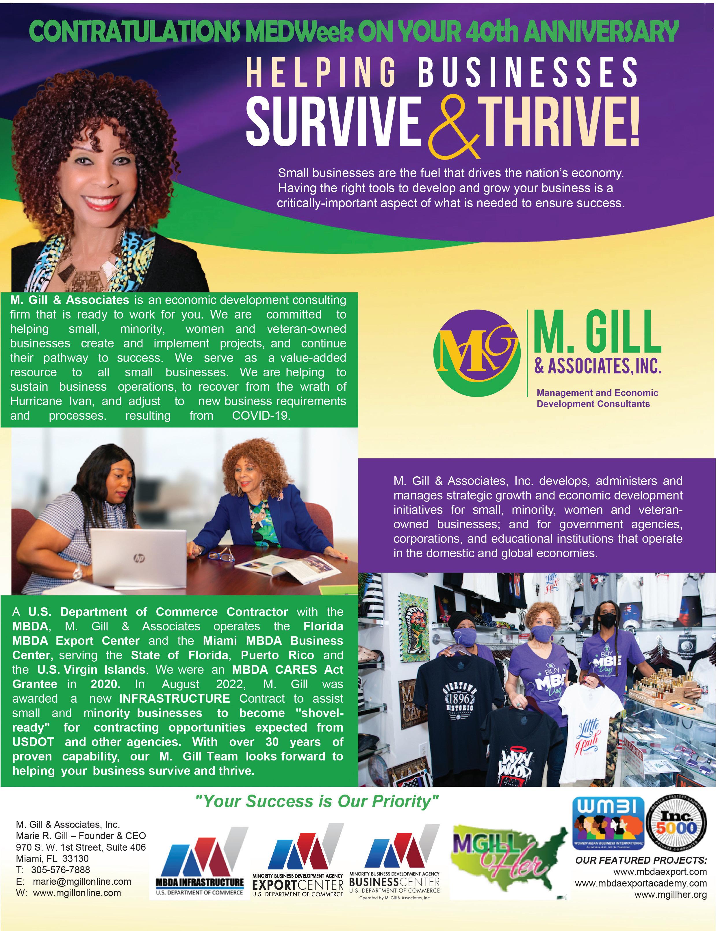 To our 40th Anniversary Sponsors, Host Committee, and other Supporters, thanks for stepping up to make this year’s MEDWeek an enormously memorable one. I thank the MBDA for continuing to support the work of M. Gill & Associates by making grant funding available for us to continue expanding the mission and serving MBEs.