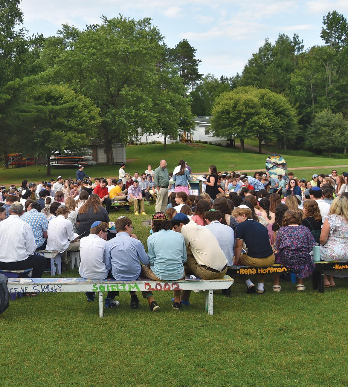 Shabbat begins with the entire camp gathering by the lake on Friday evening and ends with Havdalah on Saturday night. In between there are opportunities for sports and swimming, relaxation, and quality time with friends.