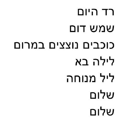 Day is done; gone the sun; stars shine above. Have a good and restful night; Shalom.