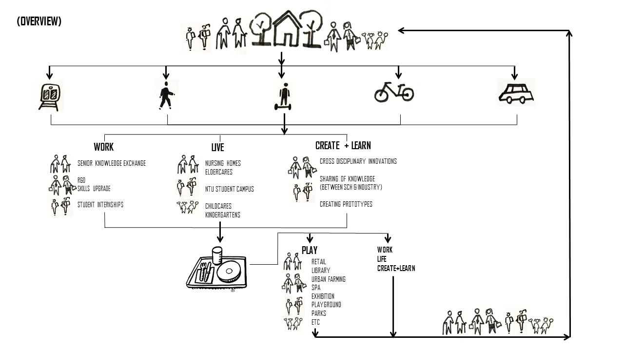 The intention is to create a healing environment that combines Community (residents), Academia (NTU), and Industry (professionals) through innovation, interaction and integration of architecture and programs in an urban context so as to optimise well-being.