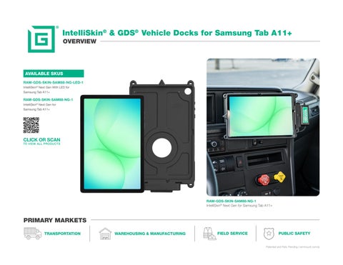 THE GO 93 GDS ® TOUGH-HUB TM EXPAND YOUR WORKFLOW 94 GDS ® ECOSYSTEM TM 95 GDS ® CHARGE TM 95 CHARGERS FOR ANY SITUATION 97 RAM ® SKIN M 99 FORM-FIT HOLDERS 101 SAMSUNG XCOVER PRO 103 SAMSUNG DEX IN-VEHICLE 105 ZEBRA 107 SCANNER SOLUTIONS 108 PANASONIC AND HONEYWELL 109 SONIM 111 SONIM BUNDLE FOR SONIM XP5S & SONIM XP8 113 OTTERBOX UNIVERSE SOLUTIONS 115 MOTORCYCLE