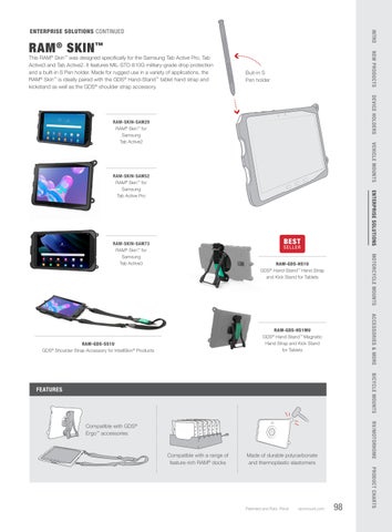 THE GO 93 GDS ® TOUGH-HUB TM EXPAND YOUR WORKFLOW 94 GDS ® ECOSYSTEM TM 95 GDS ® CHARGE TM 95 CHARGERS FOR ANY SITUATION 97 RAM ® SKIN M 99 FORM-FIT HOLDERS 101 SAMSUNG XCOVER PRO 103 SAMSUNG DEX IN-VEHICLE 105 ZEBRA 107 SCANNER SOLUTIONS 108 PANASONIC AND HONEYWELL 109 SONIM 111 SONIM BUNDLE FOR SONIM XP5S & SONIM XP8 113 OTTERBOX UNIVERSE SOLUTIONS 115 MOTORCYCLE