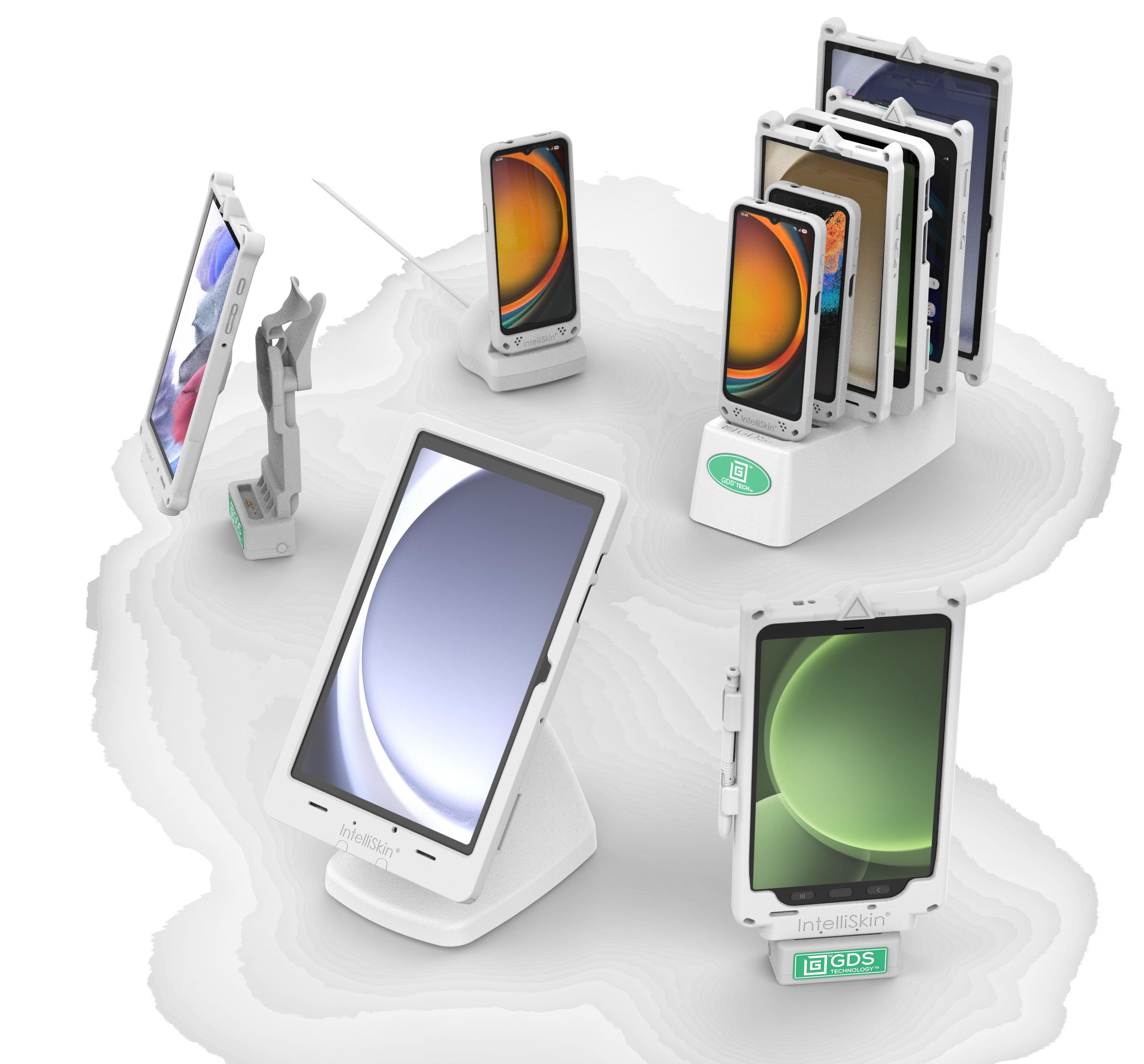 IntelliSkin® transforms tablets and phones into durable, enterprise-ready devices. Its key innovation is industry-leading port protection, which safeguards the device’s USB-C port by converting it into flat, wear-resistant pogo pads— enabling rugged use across a complete ecosystem of docks and accessories.