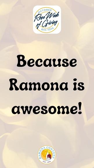 Ramona Convent is a welcoming Catholic college-preparatory high school for young women sponsored by the Sisters of the Holy Names of Jesus and Mary and committed to excellence in education Ramona’s graduates are empowered, resilient, socially conscious leaders well prepared to meet the challenges of life as contributive members of the global community