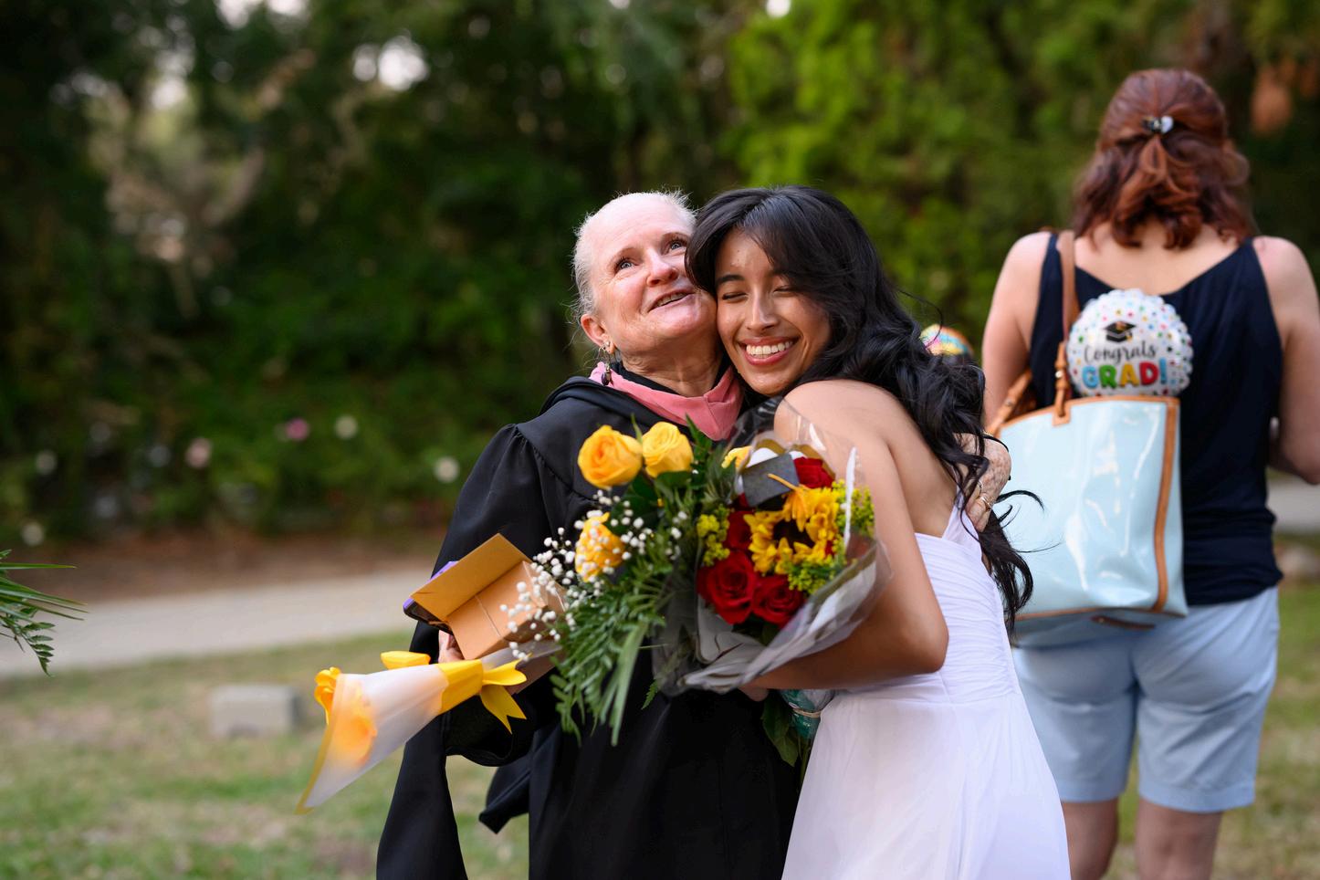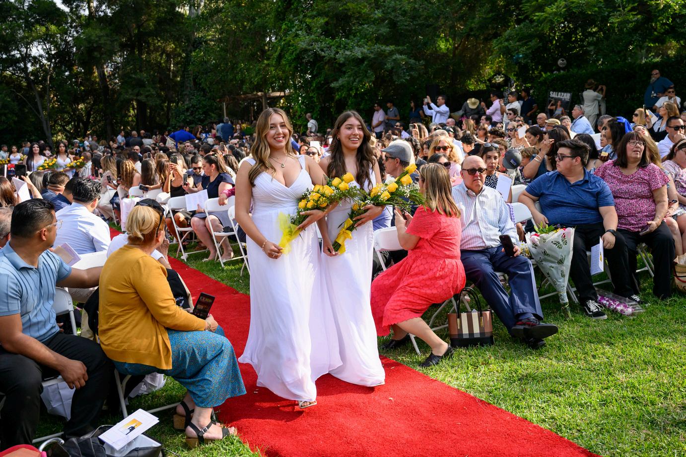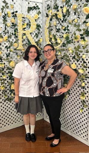 Legacy mothers proudly celebrate with their daugters, honoring the traditions that continue to unite generations of Ramona graduates.