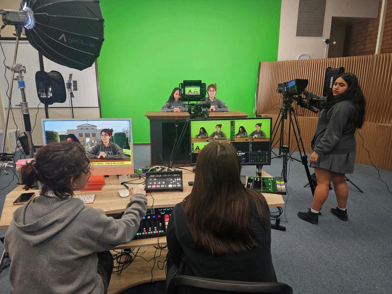 Since the grand opening, our students have fully embraced the opportunities the new studio offers Equipped with a professional TV news desk, advanced lighting, high-quality cameras, and innovative sound equipment, the studio has become a dynamic environment for our Tiger Network Television (TNT), Ramona Radio (RaRa), and Journalism students to hone their skills. As new initiatives and projects emerge, students are able to showcase their diverse talents and voices using the tools provided by our donors The studio not only provides the tools for broadcasting but also fosters a sense of community and collaboration among students, instructors, and mentors