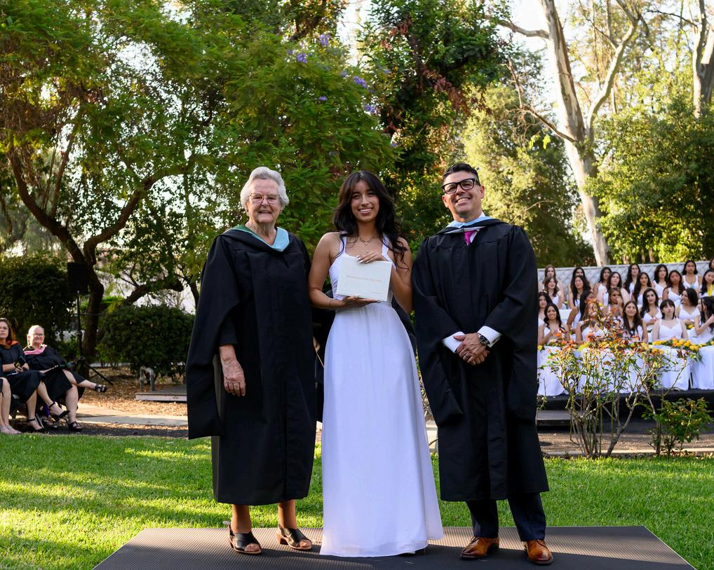 The Commencement Address was delivered by Catherine Yip ‘13, offering a unique and personal perspective from a fellow Ramona alumnae In her message, she encouraged students to embrace their futures with confidenc and resilience, reminding them that, “You don’t have to wait until you’re an expert in something before trying it - others certainly won’t and you don’t w to lose your shot.” She also spoke about the confidence instilled in her at Ramona, saying, “I know that whatever you choose to pursue in the future, the skills you gained here at Ramona will be instrumental in helping you succeed and excel” Her words resonated deeply with the class, affirming the lasting impact of their Ramona education and the power of perseverance, self-belief, and gratitude