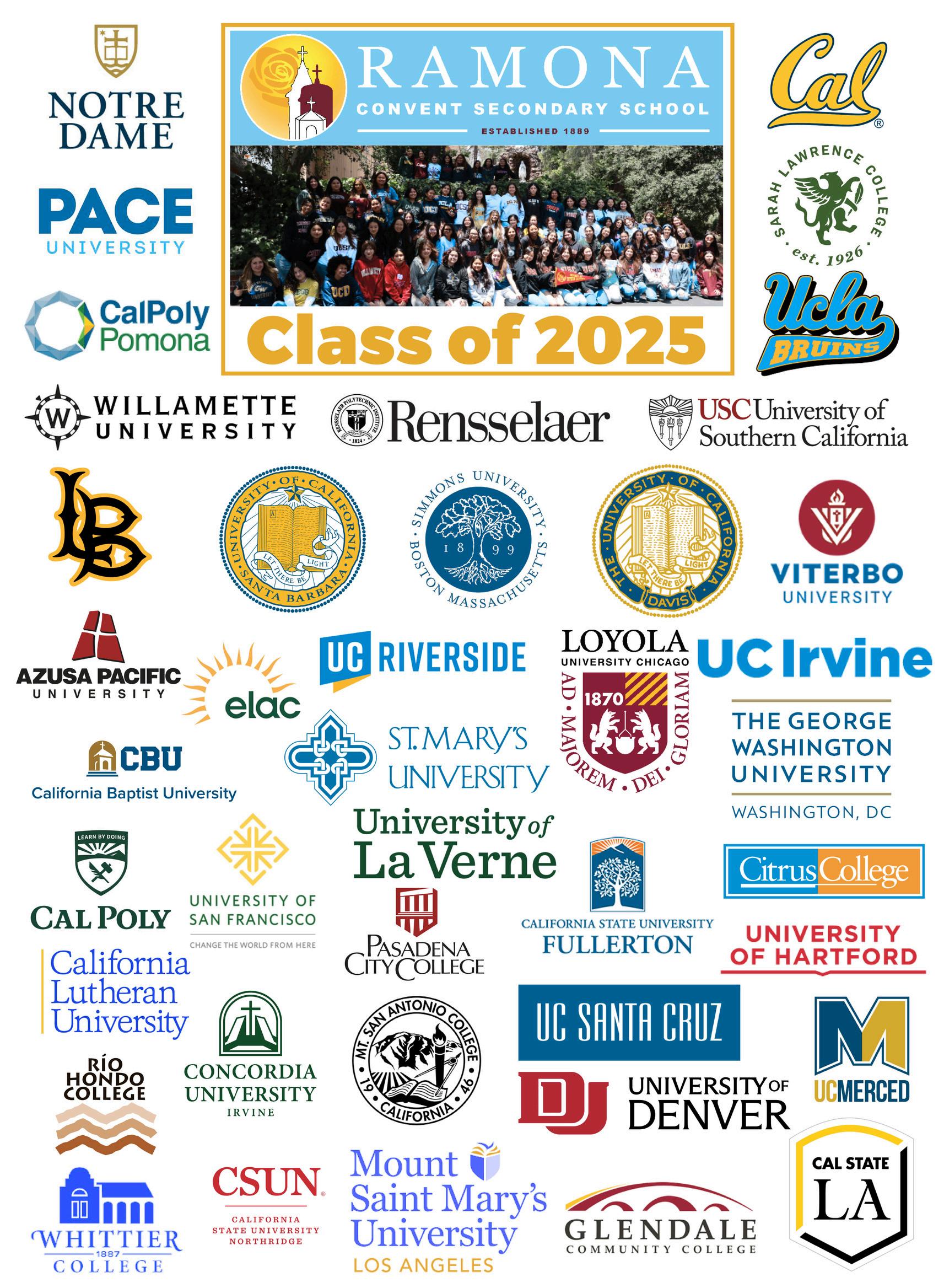 This year’s graduates were accepted to over 60 universities, a reflection of their hard work, resilience, and commitment to excellence. From UC and Cal State campuses to private and out-of-state institutions, Ramona students will be spreading their wings across the country. Many students also received scholarships and honors in recognition of their academic achievements and leadership the Class of 2025 collectively received $11,229,992 in merit scholarships and completed over 29,220 service hours during their four years here at Ramona