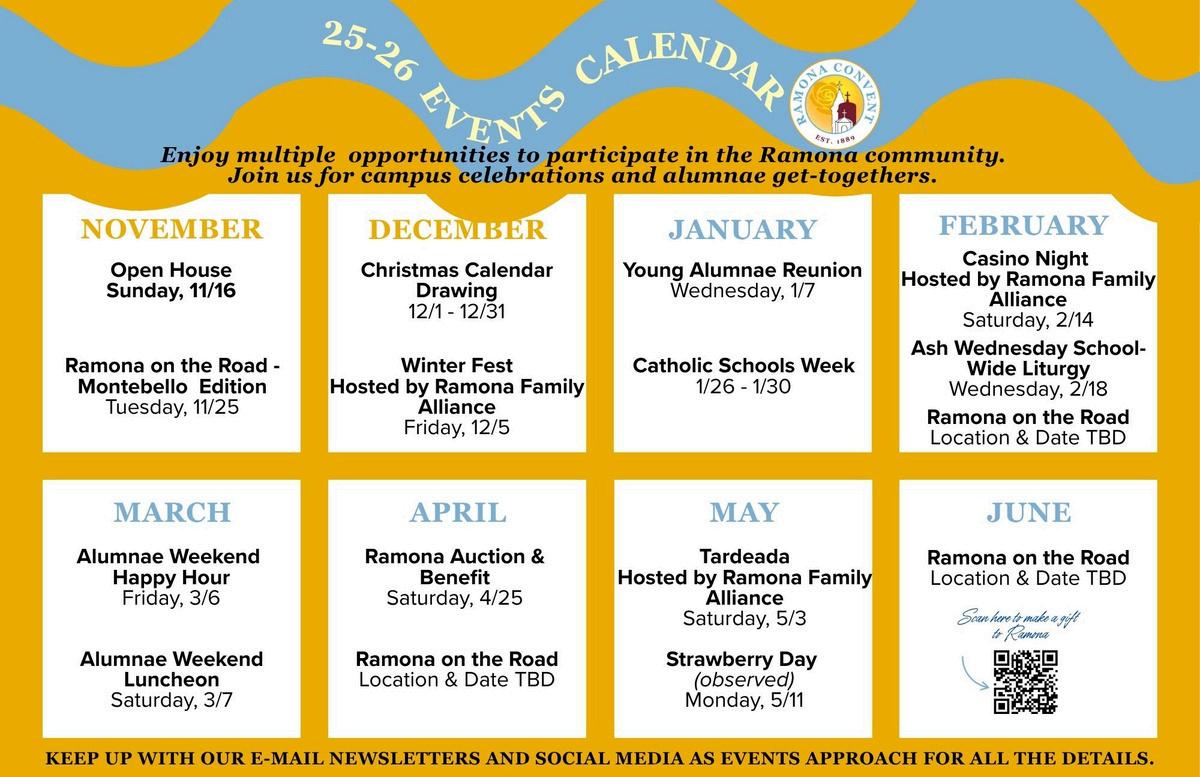 Thank you again for being a dedicated supporter of Ramona Convent To make a gift to Ramona please visit ramonaconventorg/donate or scan the QR
