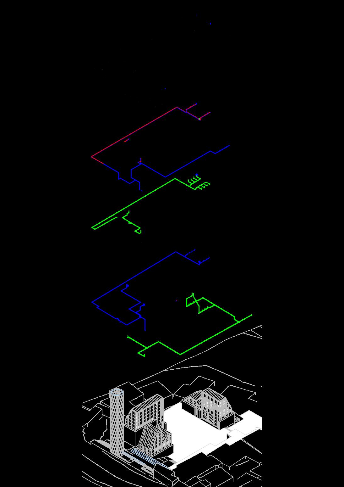 DepthMap from a CAD drawing of the existing urban site conditions, illustrating circulation in the site