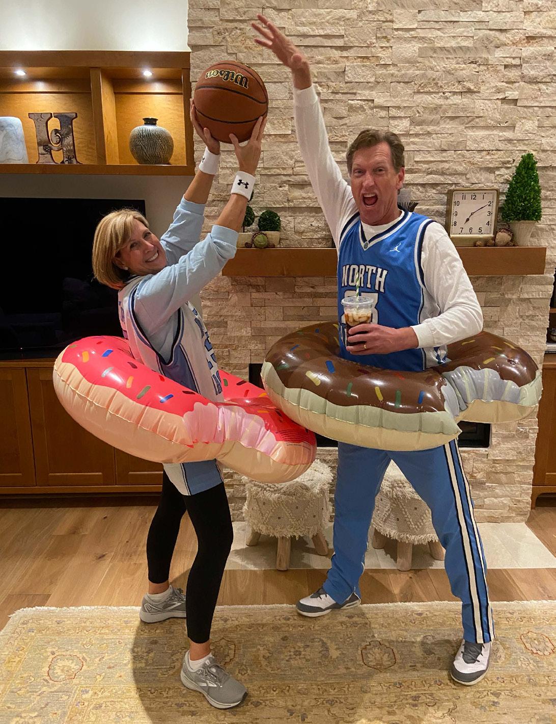 In the world of athletics, his impact is equally generous—and equally widespread. For example, he sat on the bench as a guest of Roy Williams four times during the Williams era thanks to winning bids at charitable events. He good-naturedly notes that he was 4-0 but “made sure not to offer any advice while I was sitting there.”