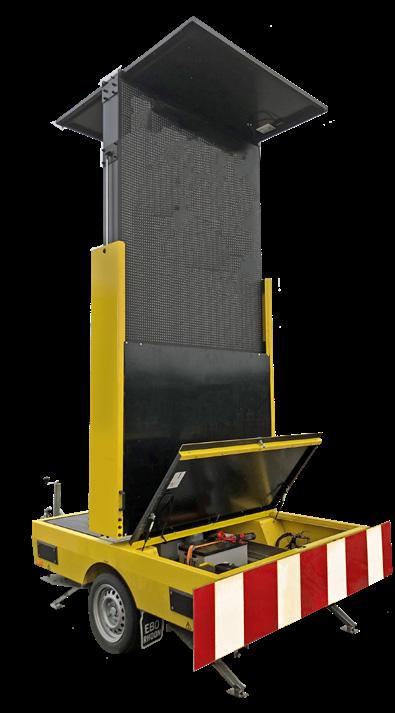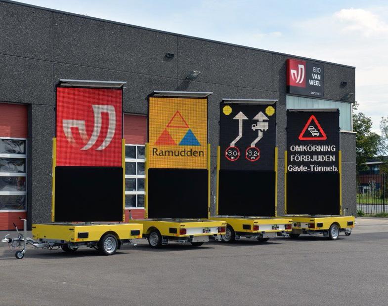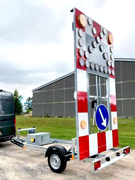VMS-skilt på trailer. Vores variable meddelelsesskilte (VMS) er forbundet med en digital portal, der muliggør kontrollerede meddelelser i realtid. For eksempel køadvarsler, vejskilte, anvisninger eller anden informationstekst. Vognens LED-skilt er 1,6 m bredt og 1,92 m højt. Vægt 1.350 kg. Kontakt dit nærmeste depot for mere information.