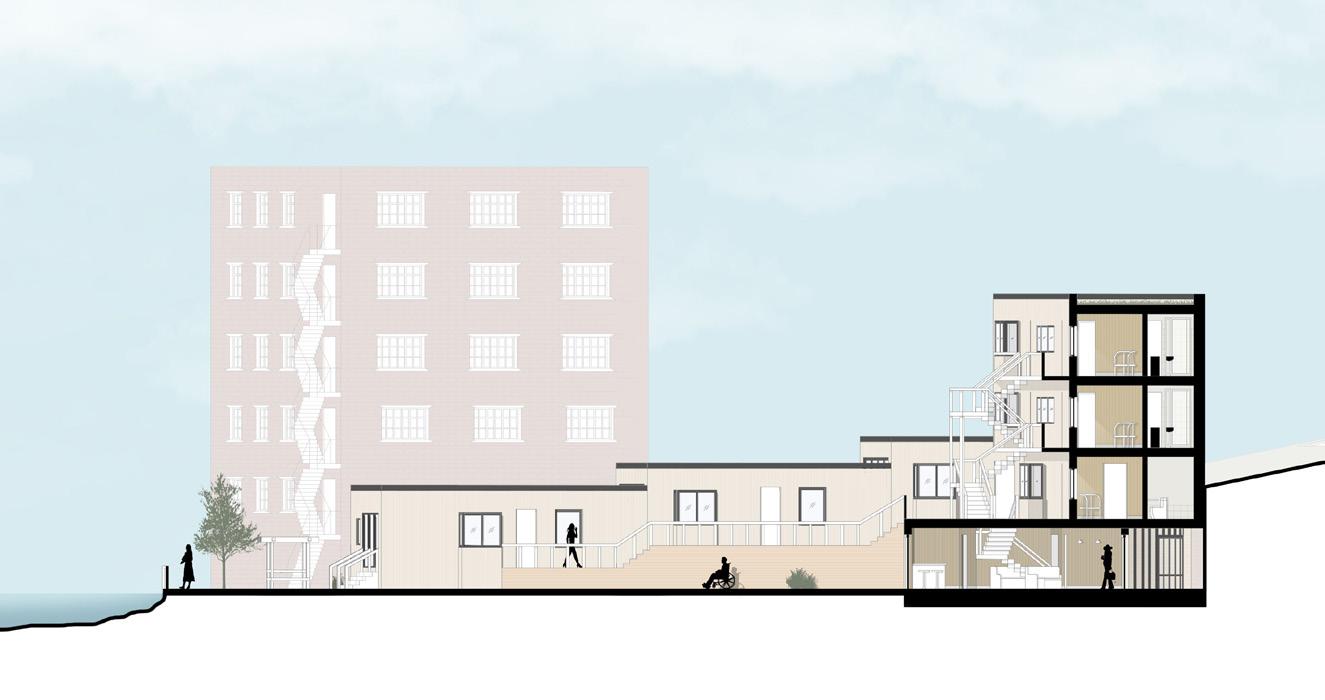 Next to Hope Mill Theatre (by a canal), Manchester, UK AutoCAD, SketchUp, Vray, Photoshop, physical model making