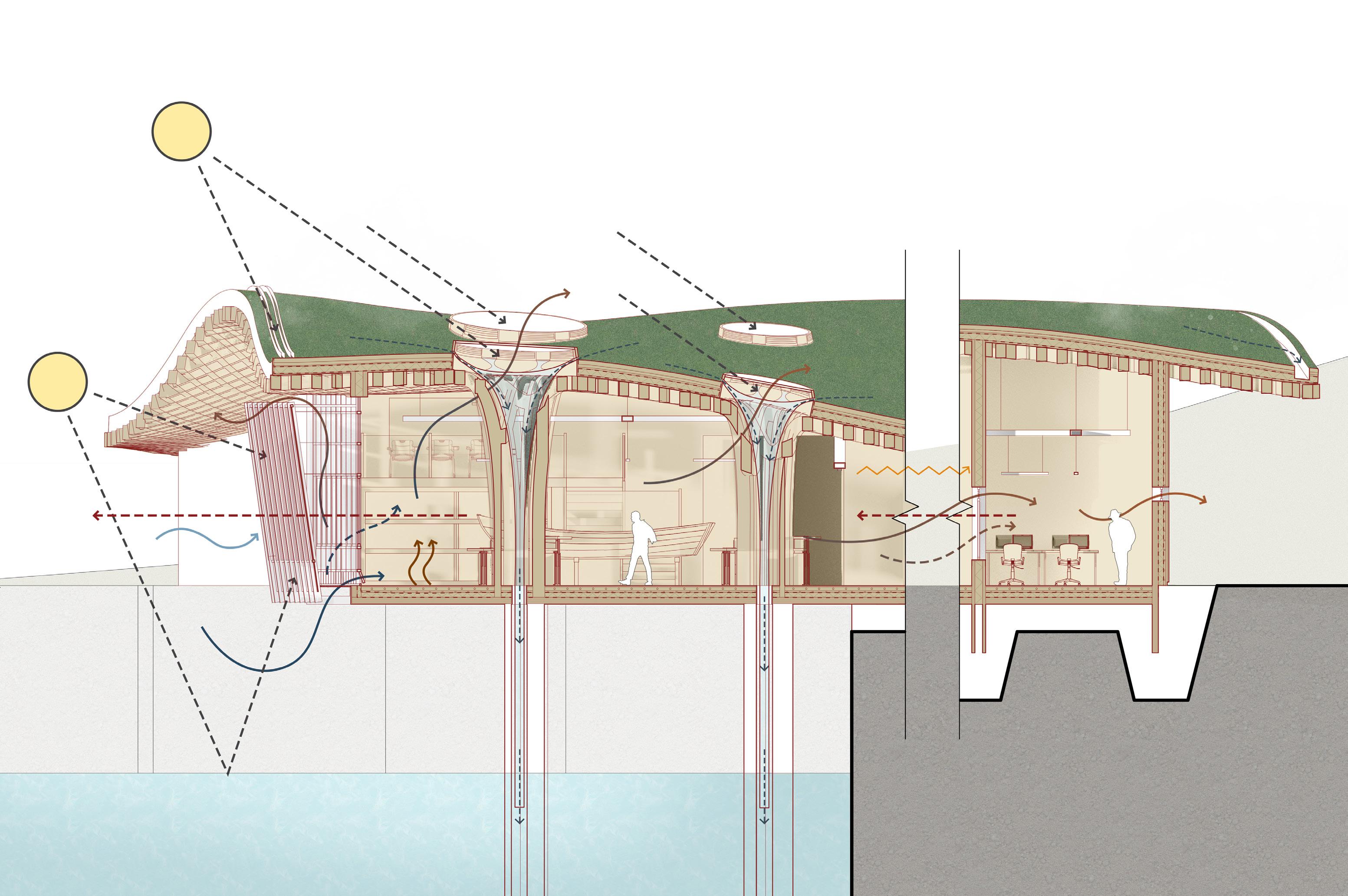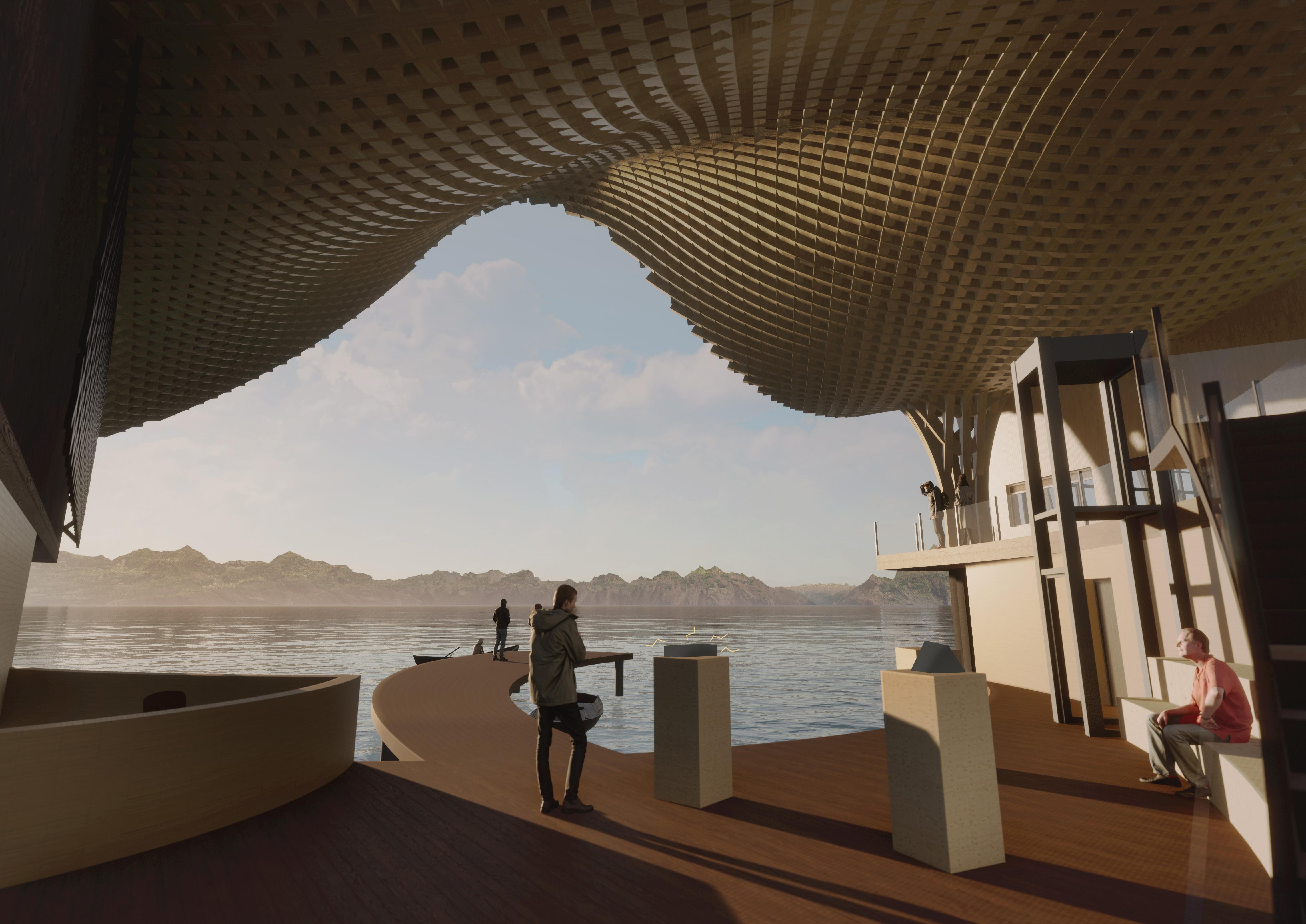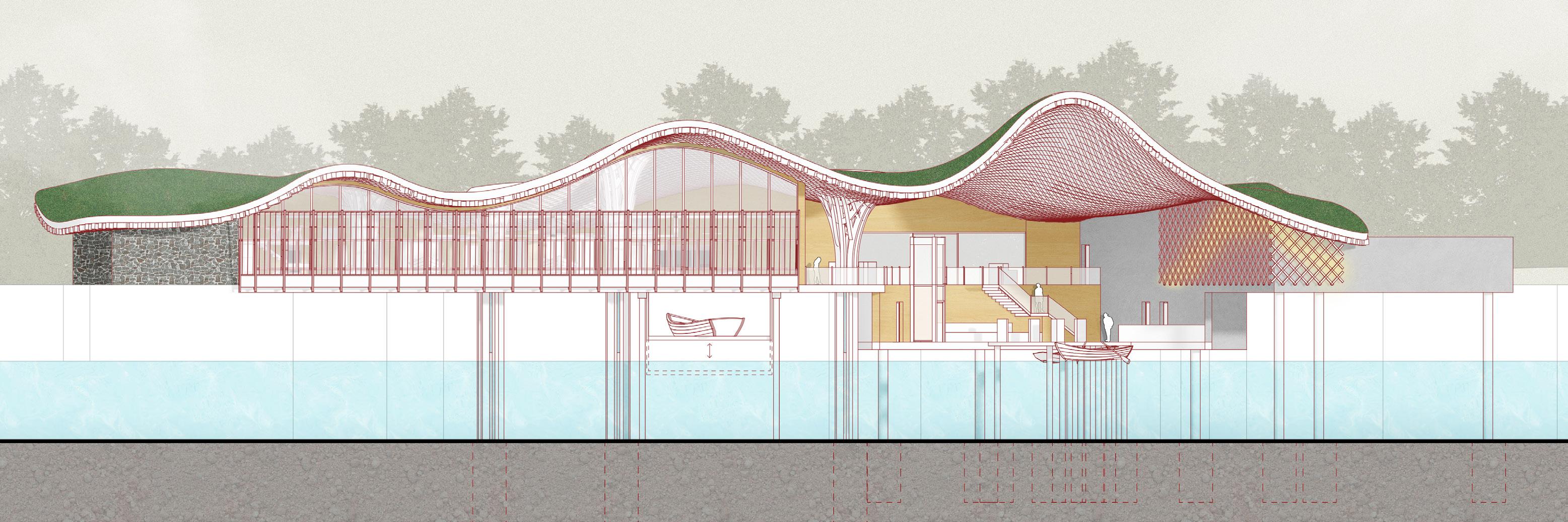 This learning centre is aimed to help empower the local community of Cumbria through the Sloyd education system (learning through craft) to tackle the ongoing unemploymentrelated issues, utilising the rising trend in UK boat export and resources already available in the area—human resources (skilled people of Cumbria in the nuclear and boatbuilding manufacturing industry) and materials (wood sourced from Grizedale). Small Modular Nuclear Reactor (SMR) in the scheme produces clean energy used in the building and the surplus is given to the grid, contributing to the UK’s goal of net carbon zero by 2050. This scheme is hoped to be the first step to a future of an empowered generation, powered by sustainable nuclear energy.