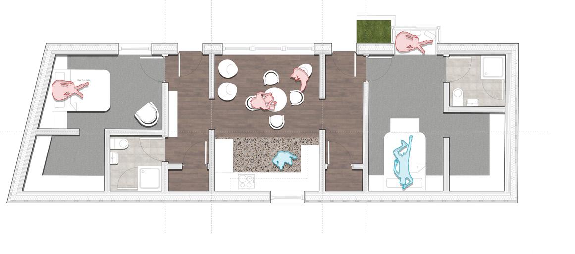 Considering the calm, peaceful atmosphere as well as the elements on site (the canal and the walls surrounding it) and its position (secluded), the plot is a perfect place for activities that require concentration or creativity. Hence, this scheme is intended as an oasis for performance poets to let their imagination run wild; a place to reach their full creative potential; a place where they can process their thoughts free from distractions; a place where ideas come to life. It will also be equipped with rehearsal spaces for poets to practice their performances before showing in front of an audience. As an extension of this, the scheme can also be used by writers on book tours, who also often do book readings in front of an audience.