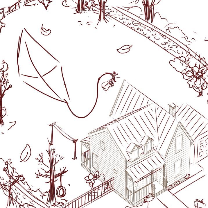 In this painting, I aim to depict where Ma lives. Using orthographic projection, I illustrate the house and its surroundings. To achieve this, I created a concept for the house facade before starting the painting process.
