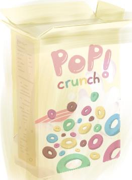 Mom said she bought me the new cereal I saw on TV last time! Oh, boy, they’re so colorful and looks very yummy and, and, they said they are very crunchy! That must taste delicious with milk!