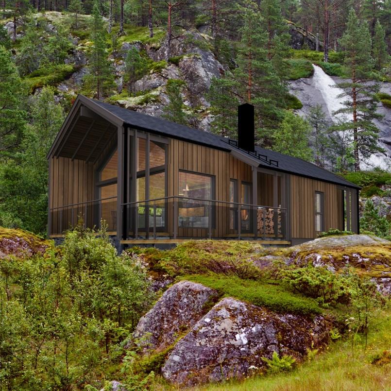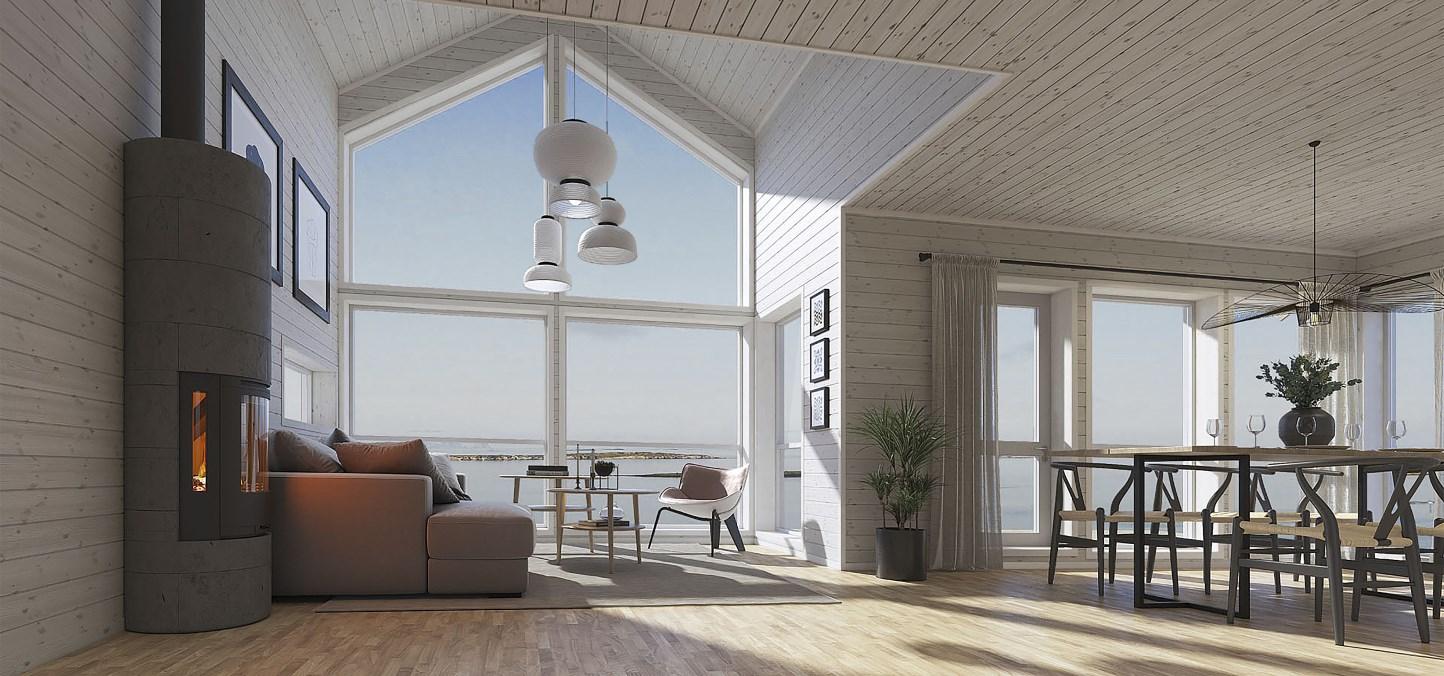 Dette gir hytta en god og varm glød, samtidig som naturen trekkes inn. Denne pakken gir deg stor frihet til å sette ditt personlige preg på hyttedrømmen.