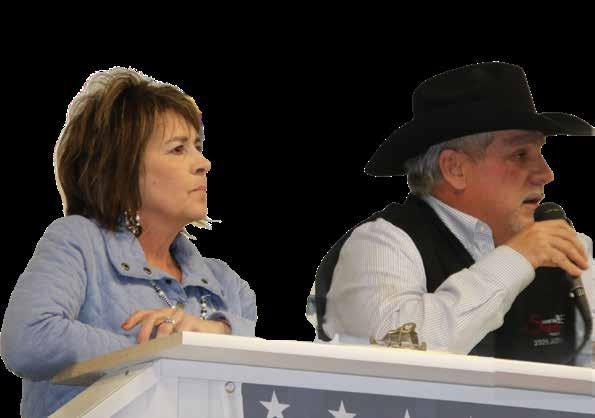 Troy and VeaBea Thomas at one of the many bull and female sales held on the ranch.