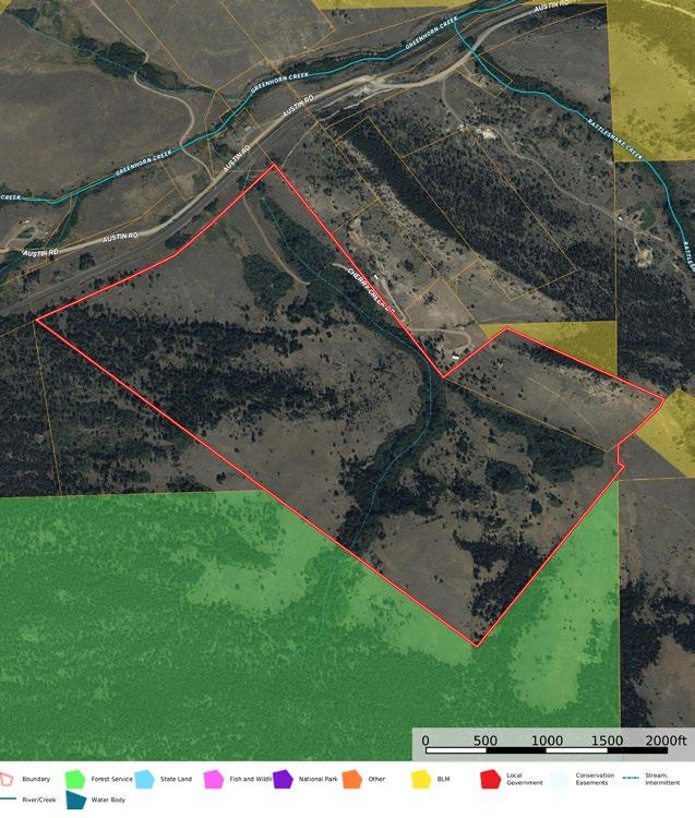 Tucked away with easy access off Austin Road, this remarkable mountain ranch offers privacy, natural beauty, and direct access to National Forest lands— inviting endless recreational opportunities right out your back gate. The landscape is a picturesque mix of timbered draws, vibrant mountain meadows, and seasonal creek bottoms shaded by mature trees and dense foliage. With its diverse topography and tranquil setting, the property presents a stunning backdrop for building a custom yearround residence or getaway cabin retreat. The open meadows provide excellent forage for livestock or horses while sweeping mountain views frame the entire property, making it as functional as it is inspiring.