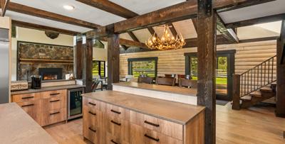 Nestled at the end of a private drive, set beyond the manicured lawn with sweeping views of the Big Hole River and Pioneer Mountains, you will reach the 3,757± square foot fully renovated three-bedroom, two full bathrooms, one-half bathroom main home, kept private by landscaping, surrounding trees, and the Big Hole River. Crafted in chinkless log style, the home is finished with a protective metal wainscot at the foundation and fir board-and-batten siding on the upper floor. Dark bronze-clad windows with coordinating rough-sawn trim echo the tones of the siding and log construction. The warm log-accented façade invites you into a spacious mudroom and into the heart of the home — a chef’s kitchen boasting double ovens, two dishwashers, concrete countertops, two large islands, and a built-in espresso machine. Sit at the raised kitchen bar or the adjoining dining area that effortlessly transitions into the great room, highlighted by cathedral ceilings, exposed beams, and a wood-burning fireplace. Expansive windows frame the uninterrupted river views, while sliding doors open onto a large deck and stone patio with a fire pit, the perfect vantage point for sunsets over the water.