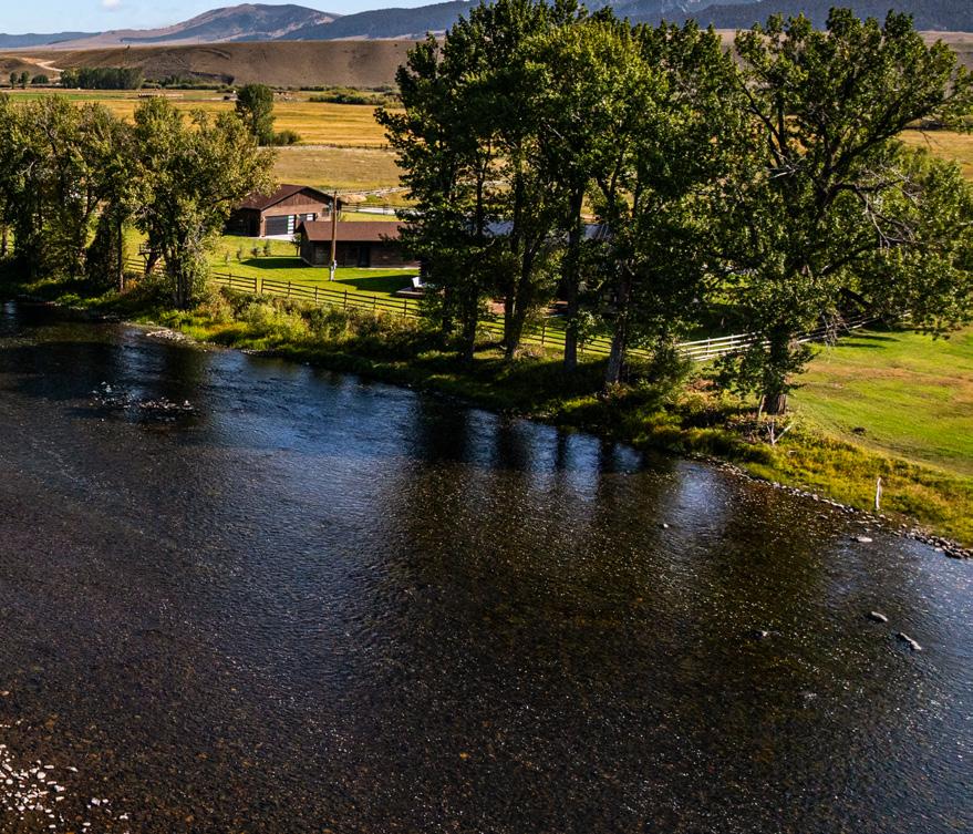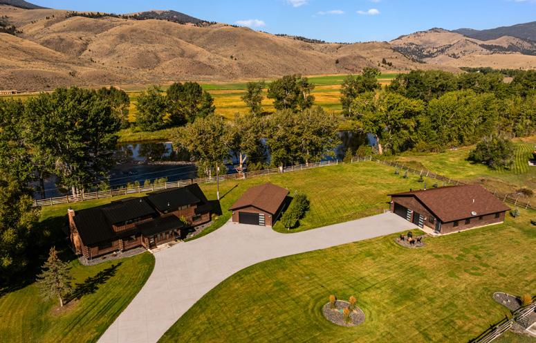 Riverfront properties like this are nearly impossible to find! Big Hole River Hideaway offers a rare opportunity to own over 300± feet of frontage on the renowned Big Hole River, offering world-class fly fishing steps from your door. This trout angler’s paradise boasts 5± deeded acres and includes a complete custom, fully renovated 3,757± square foot threebedroom, two full bathrooms, one-half bathroom main home, and two one-bedroom apartments which share a twostall garage. The property also features a large, detached heated shop/garage for storing all your recreational toys and a fully equipped RV site for entertaining your friends. With stunning views of the river, mountains, and valley. and live, fishable Big Hole River water flowing past the western boundary, this unique and quiet riverfront property sits on a quiet dead-end road just south of Divide, Montana, 15± minutes from Wise River and just 30± minutes from Butte and its commercial airport, offering both seclusion and accessibility.