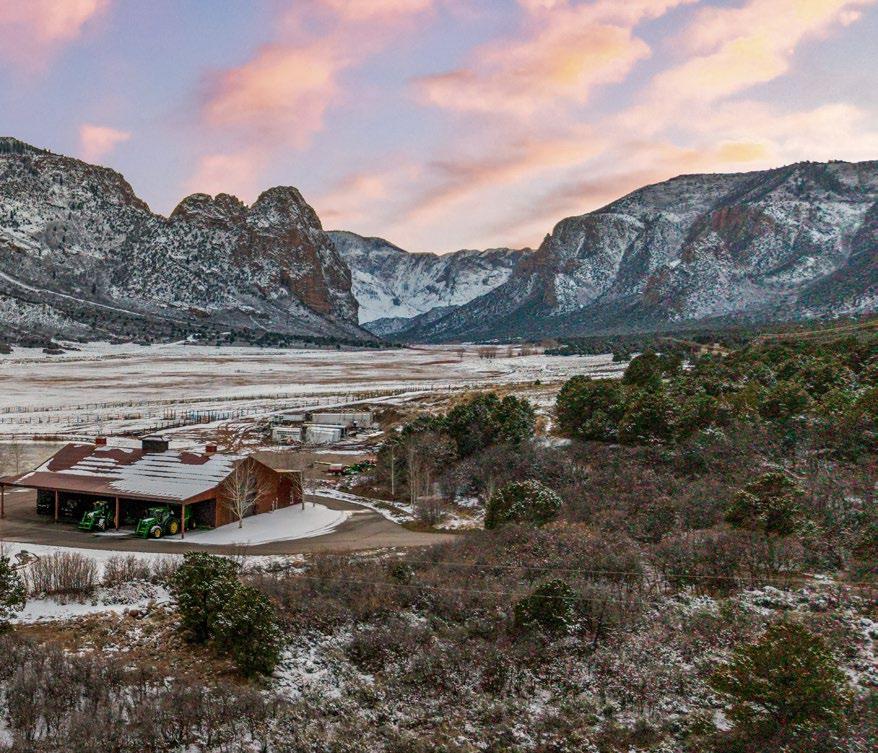 Fall Creek Ranch is a rare property located in west-central Colorado in gorgeous Unaweep Canyon. Public lands virtually surround the ranch, which comes with water rights, a large pond, and a smaller stock pond. Two small creeks, West Creek and Fall Creek, flow through the ranch. The property is fenced and is set up as a working ranch. The improvements are not what you would expect on a working ranch. The large barn/workshop features a onebedroom apartment suitable for a ranch manager and boasts high-end exterior finishes. The two-bedroom, one-bath ranch house is equally well done and is thoughtfully situated next to the pond. The ranch is a unique opportunity in today’s ranch market.