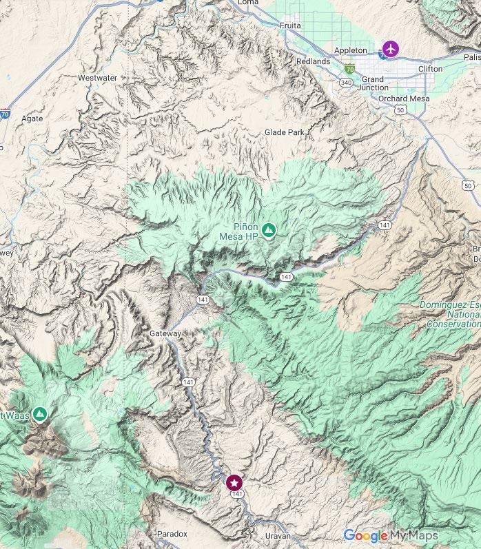 At the Whitewater Junction of CO Highway 141 and US Highway 50 between Grand Junction and Delta, turn west on Highway 141 toward Gateway. Travel approximately 23 miles to the ranch gate, which will be on your left.
