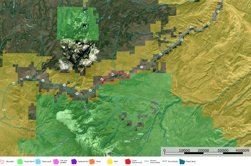 Fall Creek and West Creek flow through the ranch, lending the property a lush, green aura. Set in the dramatic Unaweep Canyon, the ranch is virtually surrounded by public lands managed by the US Forest Service (USFS) and the Bureau of Land Management (BLM).