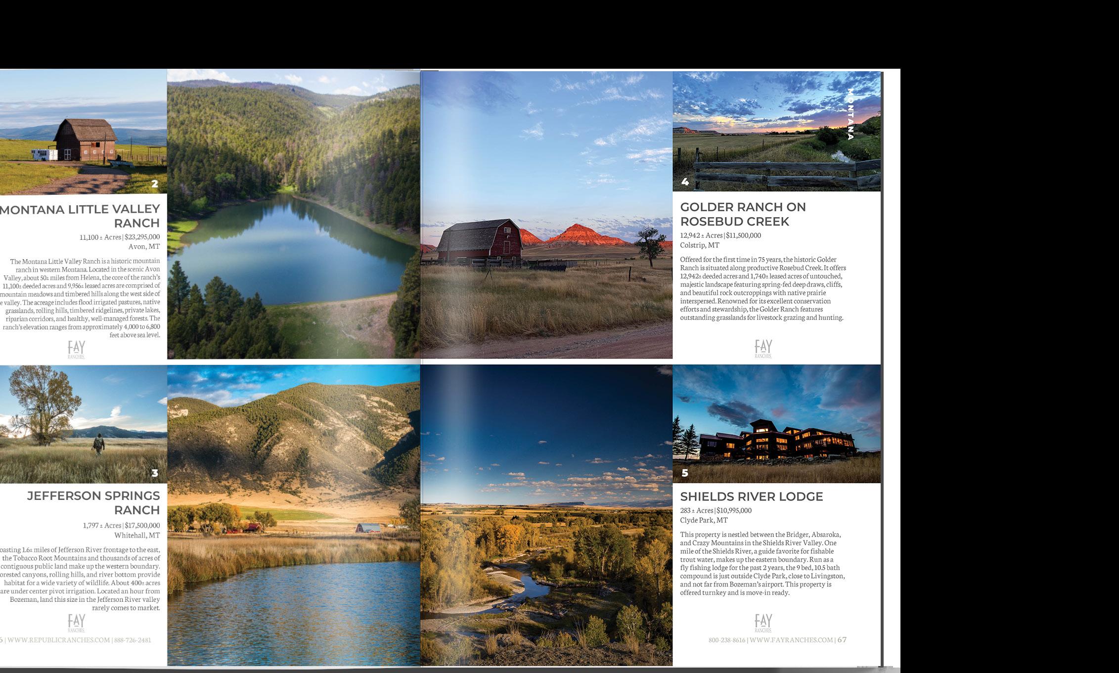 is utilized in a multitude of forms by Fay Ranches in our efforts to continually stay informed on the constant shifts in marketing methods, allowing us to reach the right buyers. Our strong partnerships with our advertising affiliates afford our listings significant exposure in terms of both quantity and quality. We strategically place our print advertising in publications that target an audience—in terms of wealth and interests—of potential land investors and ranch owners. Along with traditional print advertising, Fay utilizes highly effective letter campaigns, airport advertising, and our own Land Investor magazine to get our listings in front of qualified land investors.