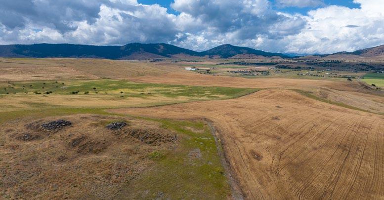 The ranch elevation ranges from approximately 2,900’ to 3,200’ and has varying terrain that provides privacy and elevated building sites. There are a couple of shops and three grain silos on the property. The land is currently planted with winter wheat. It includes small water rights.
