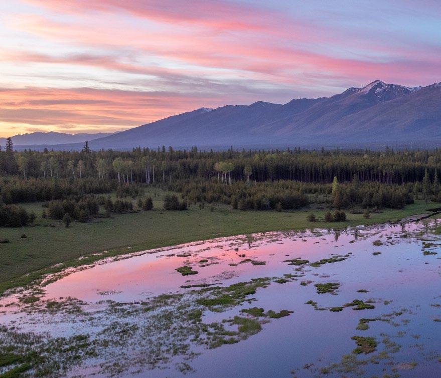 Two seasonal creeks flow through the property, feeding the wetland area and creating an 11± acre lake that serves as a private oasis for a variety of wildlife species. This water level can vary significantly throughout the year as the wetland area fills from mountain snowmelt in the spring. The water drains from the lake and flows northwards towards the property border, leaving the property and eventually connecting with the Swan River.