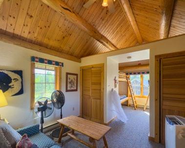 This classic, 2,941± square foot, log home was built in 1976. It is considered a 1.5-story building with four bedrooms and 2.5 bathrooms. The main floor is approximately 1,600 square feet and features the kitchen, dining room, living room, a sitting room, a bedroom currently used as an office, a half bathroom, and a covered entryway. The upper floor measures 1,341± square feet, featuring three bedrooms and two full bathrooms. A large deck was positioned to the east to take in the views and absorb the morning sunshine. A detached garage was built in 2003 and measures 20’ x 40’, with an attached carport that measures 8’ x 40’. Both the home and garage have power, and a backup generator is also in place.