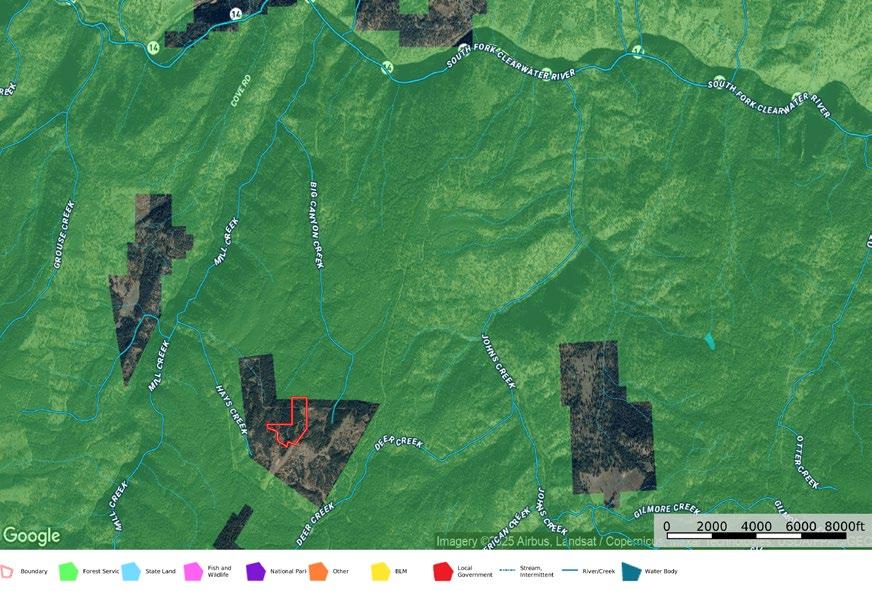 Hungry Ridge Fly-In Ranch is located in Idaho’s Game Management Unit (GMU) 15, known for its excellent big game hunting. This unit offers prime habitat for elk, mule deer, whitetail deer, black bear, and mountain lion, with a mix of rugged terrain, dense timber, and open meadows providing ideal conditions for both spot-andstalk and stand hunting. GMU 15 is part of the Clearwater Region, recognized for high elk densities and trophy-class bulls, making it a top destination for serious hunters.