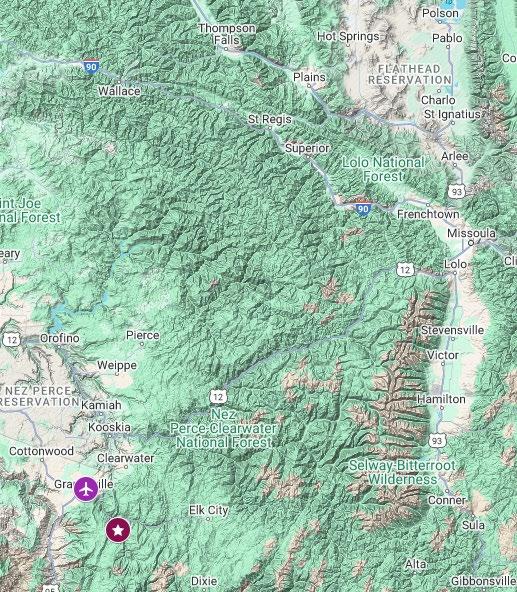 Hungry Ridge Fly-In Ranch is a premier backcountry escape in the heart of the Nez Perce-Clearwater National Forest, offering both solitude and adventure in an unrivaled setting. Only 25± miles northwest of Grangeville, Idaho, this 39± deeded-acre property features a 2,200± foot private grass airstrip, making it ideal for aviation enthusiasts. At an elevation of 4,599± feet, the ranch provides sweeping views of the Camas Prairie to the west and the endless wilderness of Nez PerceClearwater National Forests, spanning nearly 4 million acres.