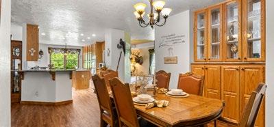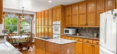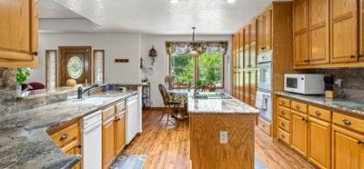 Built in 2006, the four-bedroom, three-bath residence is designed for practical multigenerational living, featuring two primary suites and an open, functional layout. The kitchen includes a raised bar top, generous storage, and a south-facing breakfast nook that draws in consistent natural light. A walk-out south-facing porch along the creek extends the living space outdoors, well-suited for dining, gathering, and evenings beside the water.