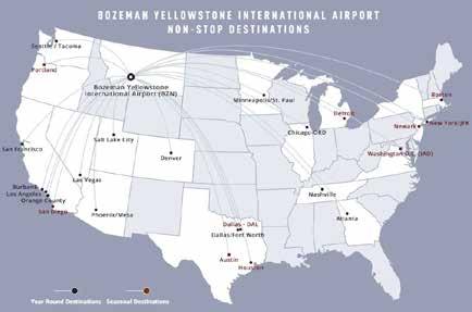 Located just 15± minutes from the property, Bozeman Yellowstone International Airport is Montana’s busiest airport and the hub for those traveling to and from southwest Montana. The airport is serviced by numerous daily flights from Alaska, Allegiant, American, Avelo, Delta, JetBlue, Southwest, Sun Country, and United Airlines.