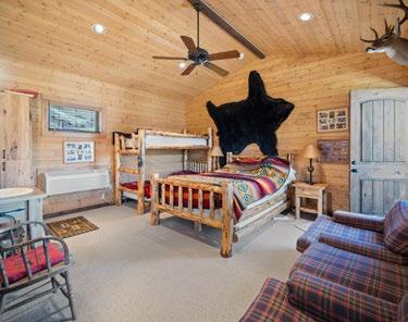 • 700± square-foot bunkhouse, with a 380± square foot covered deck, is designed with two separate suites that are divided by a small shared kitchen