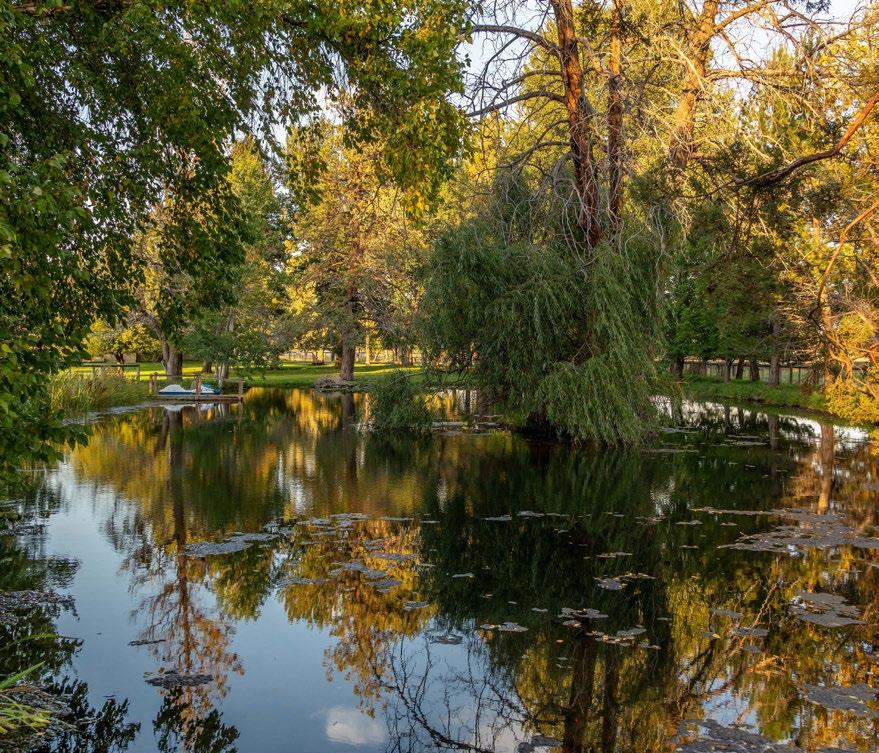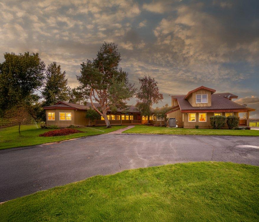 From the southwest corner of the primary residence, a large lawn opens up to the large irrigation pond, surrounded by mature trees, and you will feel like you are in a private park. Watch kids, pets, and wildlife scamper around the pond’s grass. Listen to frogs croak at dusk as the sun sets behind the Three Sisters mountains as your favorite pony grazes on fresh grass in the foreground.